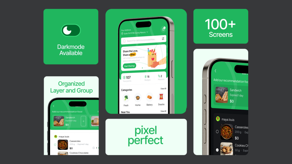 Foosh - Food Sharing Mobile App UI KIT Build a professional Food Sharing Mobile App UI KIT with this UI KIT.
